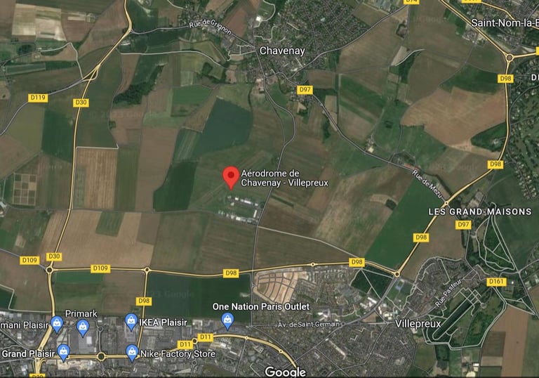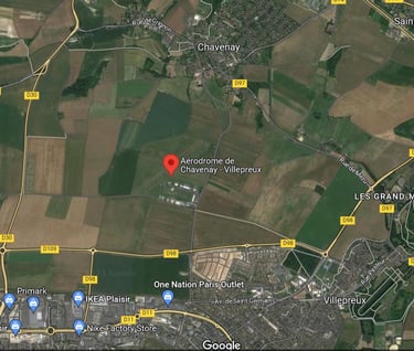 L'aérodrome de Chavenay-Villepreux, créé en 1936, se situe dans le département des Yvelines sur la plaine de Versailles, à seulement 12 km au nord-ouest de Versailles.